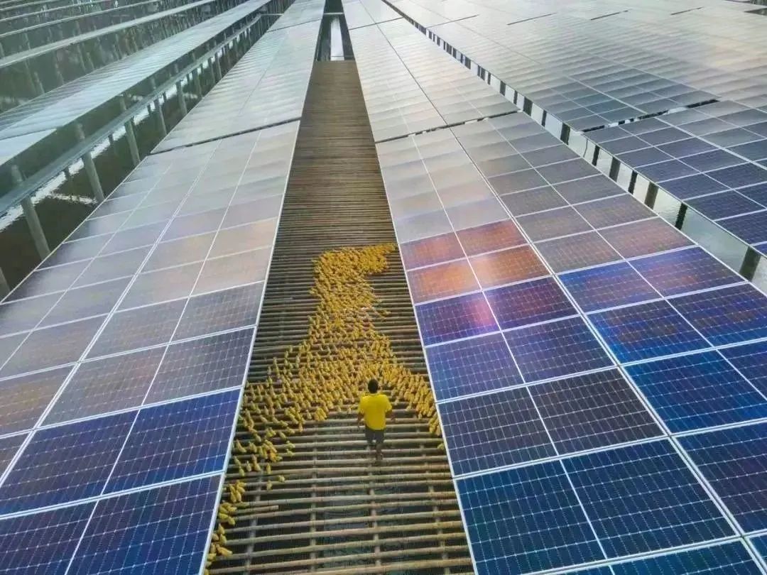 據(jù)了解,起初這個項目并不被村民所認可,大家都擔心魚塘上面架設(shè)光伏板會影響到養(yǎng)殖。但在第一批魚鴨投入養(yǎng)殖后,“漁光互補”的優(yōu)勢很快顯現(xiàn)。往年的每個夏天,由于持續(xù)的高溫,養(yǎng)殖戶的魚苗和鴨苗往往損失慘重,沒有很好的解決辦法。而如今,魚塘里4米多高的光伏帶來一片陰涼。無論是水中的魚兒,還是水面的鴨子,存活率都提高了,成為“漁光互補“模式帶來的最直觀收益。