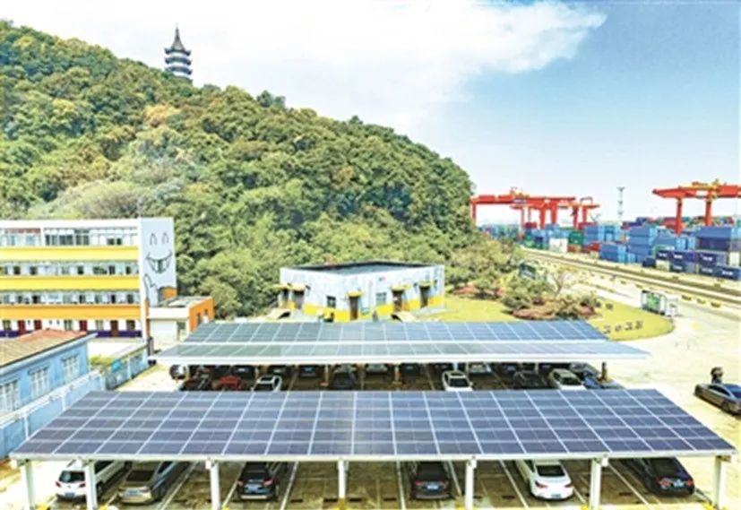 項(xiàng)目案例:寧波舟山港首設(shè)一體式光伏充電車棚項(xiàng)目,該一體式車棚頂上安裝了光伏發(fā)電板,棚內(nèi)設(shè)有10個(gè)直流充電樁,合理使用綠色能源。按每輛車平均充電5-6小時(shí)計(jì)算,該車棚每天能滿足近30輛電動(dòng)汽車的充電需求。