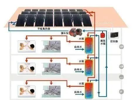 按加熱方式可以分為直接式和間接式兩大類。直接式系統的生活熱水水源直接流經太陽能集熱器,經集熱板加熱后回流至貯熱水箱中,供生活熱水。間接式系統的生活熱水不由太陽能集熱器直接加熱。系統一次則不會產生阻塞,適用于各種不同的水質及大型系統。