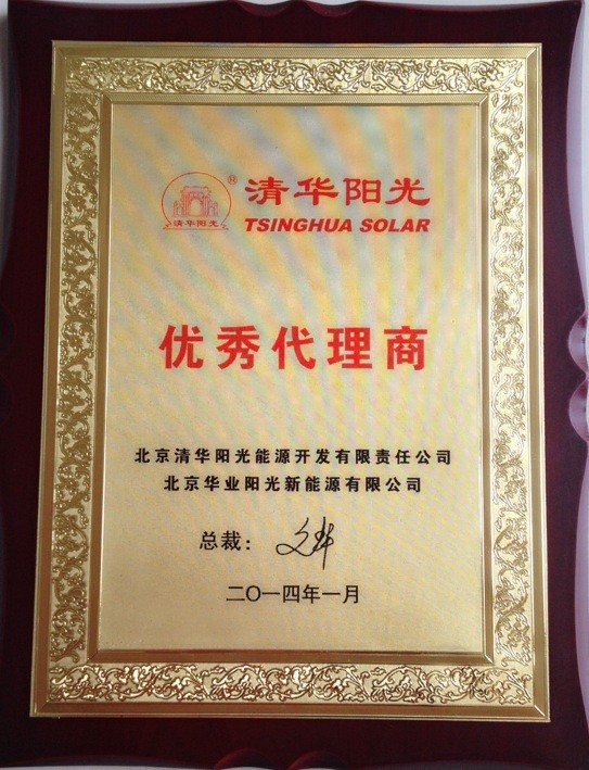 在剛剛結束的以“創新、分享、合作、共贏”為主題的清華陽光2014年全國代理商大會上我司獲得了“優秀代理商”的榮譽稱號。