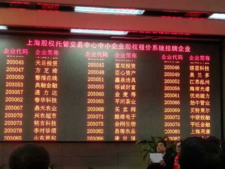 2014年12月24日上午10:58分,我司在上海股權托管交易中心成功掛牌,企業代碼:203056,可喜可賀!