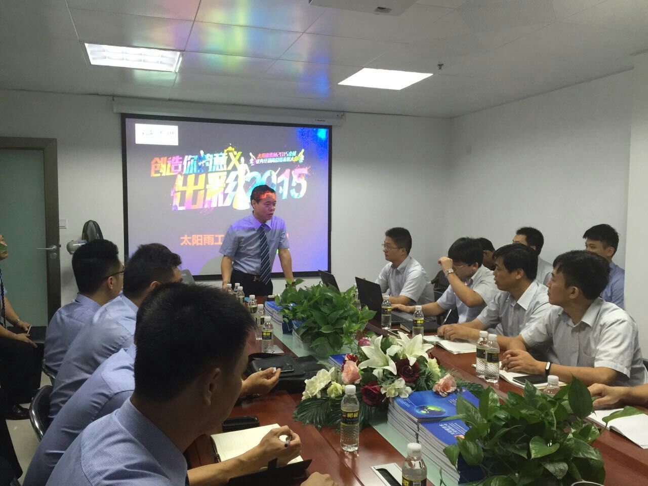 4月29日,公司組織由太陽雨集團有限公司海南事業發展部潘沂江先生為首一行5人前來公司,對公司全體員工進行《太陽雨工程產品線介紹》等知識培訓學習。