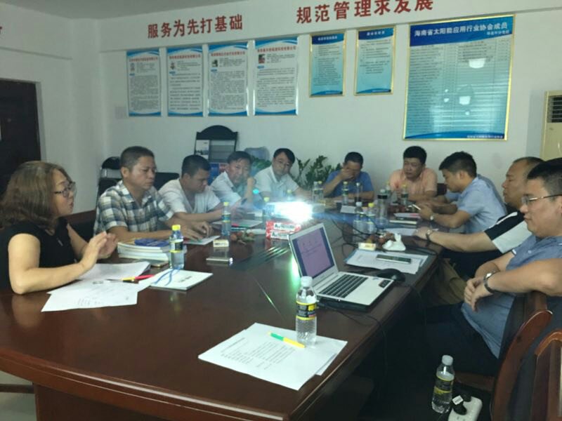 海南省太陽能應用行業協會2017年第一屆常務理事會6月3日召開,會上,聽取了協會李國力秘書長的工作匯報。討論了協會目前工作,最后,海南省太陽能應用行業協會會長,海南光譜太陽能公司董事長寧家川做工作總結,并對協會下一步工作開展進行了工作安排。