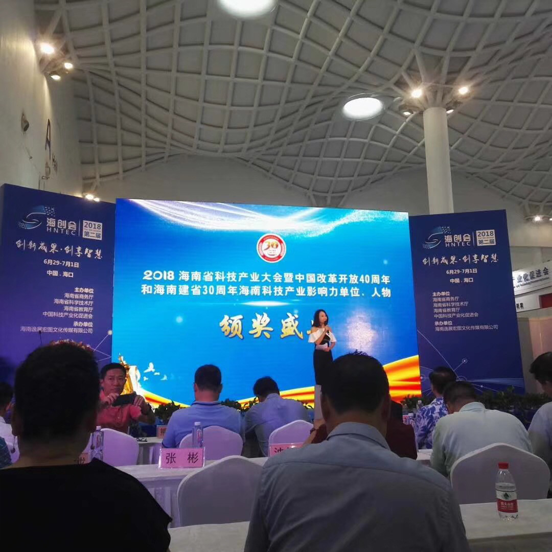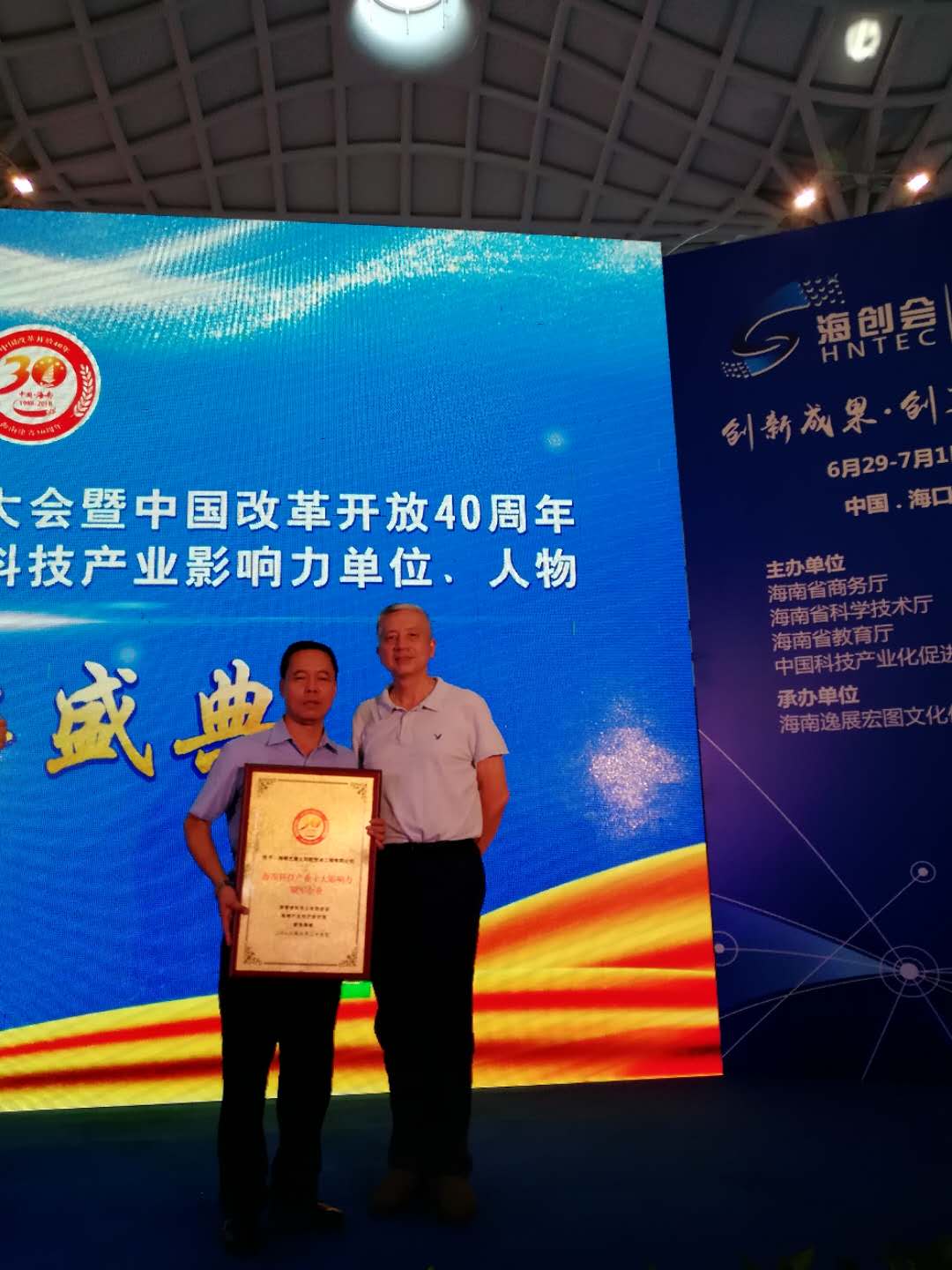 2018年6月29日,我司在海南省科技產業大會暨中國改革開發10周年和海南建省30周年科技產業影響力大會上獲得《海南科技產業十大影響力領軍企業》榮譽,公司董事長寧家川與新浪海南總經理馮林輝先生,海南南海經濟技術研究院院長胡衛東先生,中科院西安光機所研究員張國琦先生合影。