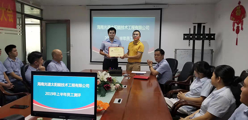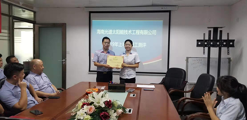 經過民主評比,財務部出納劉瑩以高于第二名0.2分獲得上半年公司評比第一名,獲夫妻雙飛新疆7天6晚獎勵,第二名公司總工程師左文禮獲單人新疆7天6晚旅游獎勵,第三名三亞辦事處經理莊恢智獲現金獎勵。分別由黃總,賀總,我給獲獎員工頒獎。祝賀他們!