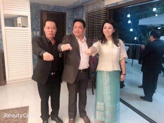 我司董事長寧家川、總經理郭燦受邀出席菲律賓前總統Gloria Macapagal Arroyo阿羅約女士的官邸舉行家宴,宴會出席者有省長,部長,駐華使館參贊,石油公司總裁等與代表團意見,商議合作事宜。