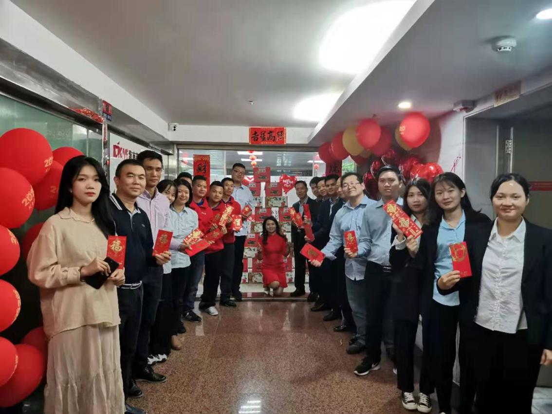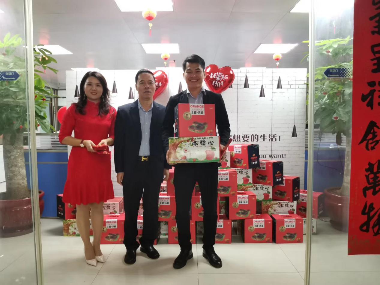 六、福利發放:寧董事長及郭總給每位員工發放年貨、年終獎金,并集體進行了合影留念。