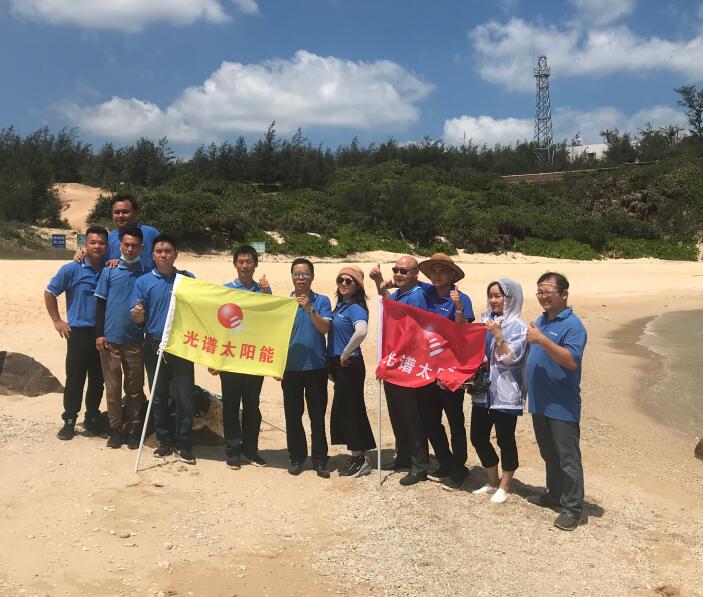 海南光譜太陽能技術工程有限公司在文昌八門灣景區全體合影留念