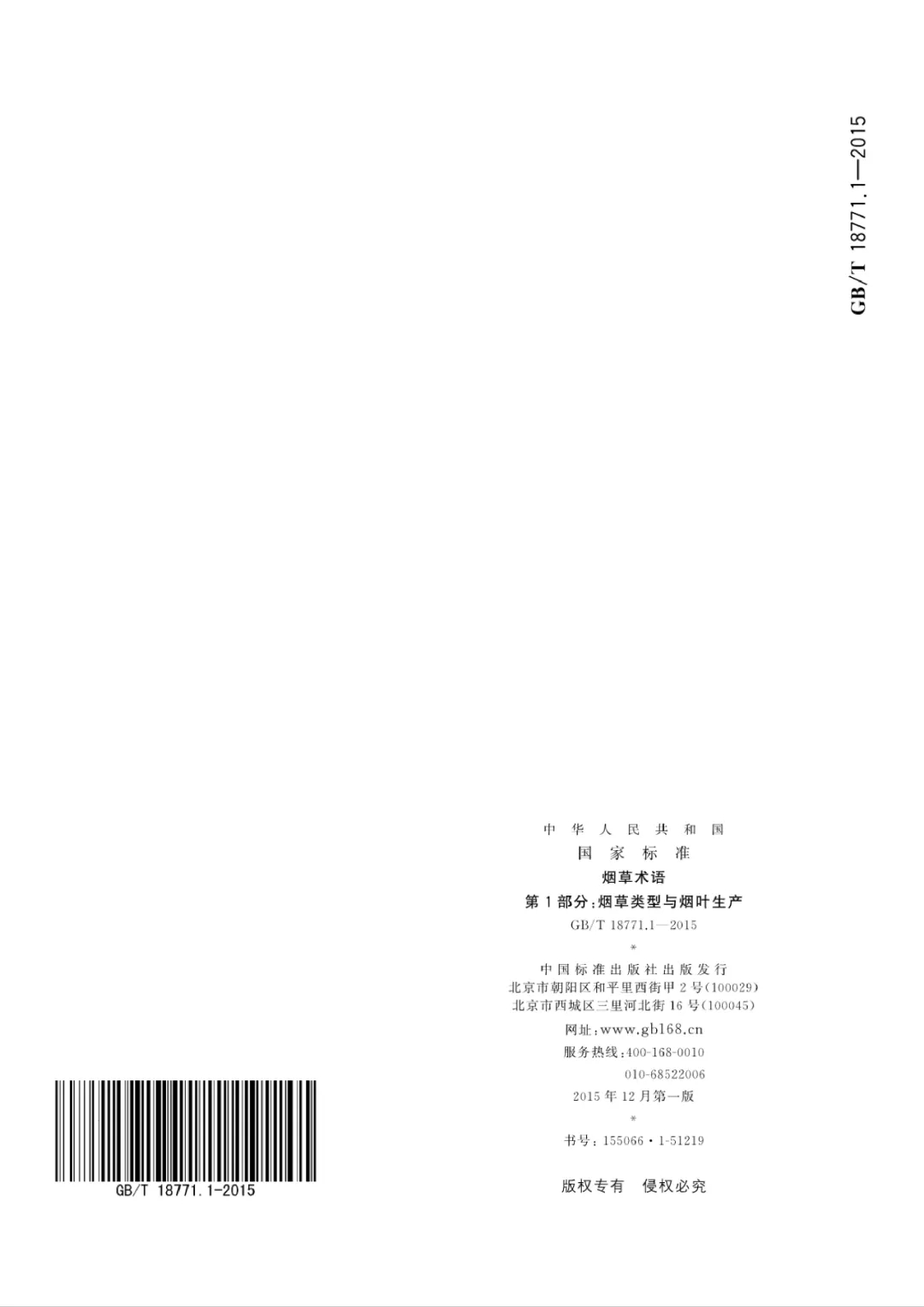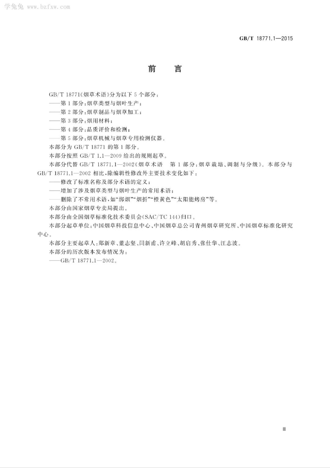 GB/T18771《煙草術語》由國家質檢總局、國家標準委于2015年10月9日發布,并于2016年5月1日起實施。本文為GB/T 18771.1-2015《煙草術語第1部分:煙草類型與煙葉生產》