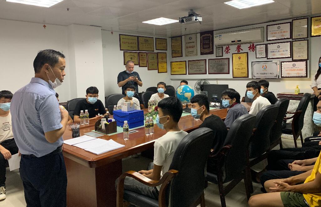 2020年7月4號一早,在二位老師的帶領下,海南省海口市技師學校的20名同學如約而至,這是公司首次采用實習生,公司領導給予了高度重視并舉行了實習生歡迎儀式,光譜公司董事長寧總、副董事長郭總分別先后發表歡迎致辭,對實習生們的到來表示了熱烈歡迎及美好祝愿,同時對實習生們提出了殷切希望,鼓勵新員工盡快適應新角色、新環境。