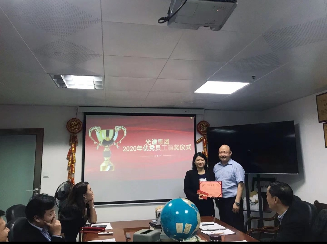 經(jīng)過(guò)民主評(píng)比,測(cè)評(píng)結(jié)果于2021年2月8日上午進(jìn)行宣布,在優(yōu)秀員工頒獎(jiǎng)儀式上,公司副董事長(zhǎng)賀元為2020年度優(yōu)秀員工劉瑩頒發(fā)了獎(jiǎng)金和榮譽(yù)證書(shū)。