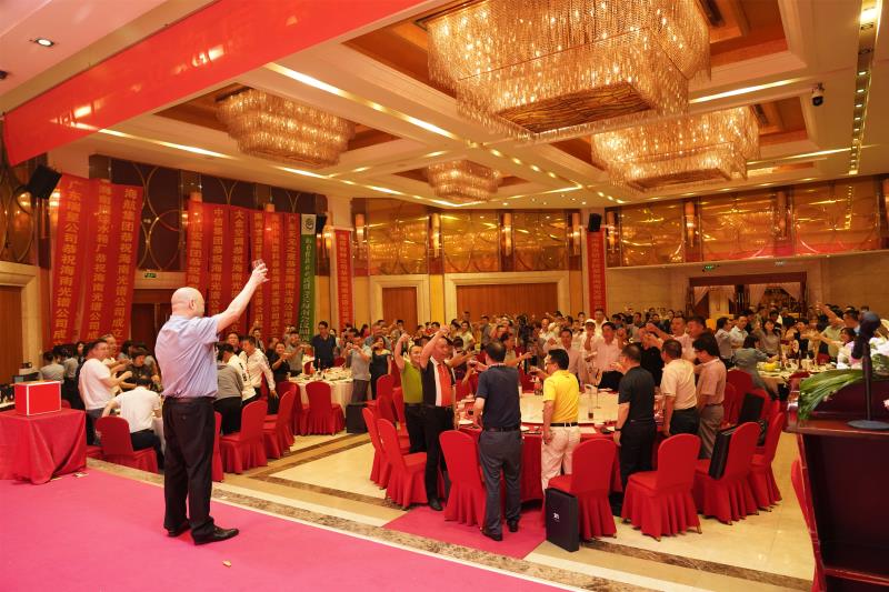 活動的最后一個篇章是“共贏未來”。這一篇章在晚宴上舉行了本次周年慶的祝酒儀式,由海南光譜公司副董事長賀元先生登臺致祝酒詞,現場所有賓客斟滿酒杯共飲杯中酒,象征著海南光譜公司開啟了下一個更加燦爛輝煌的二十年。