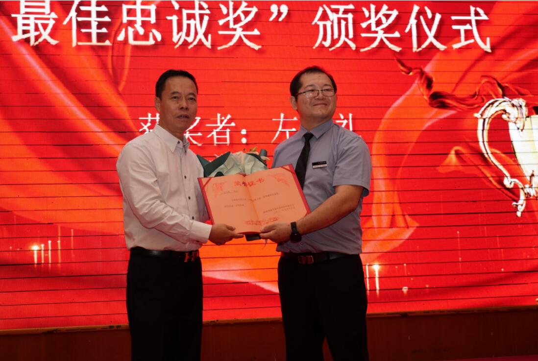 接下來舉行的“最佳合作單位”授牌儀式,海南光譜公司寧董事長為“最佳合作單位”的代表們頒發牌匾并集體合影留念。