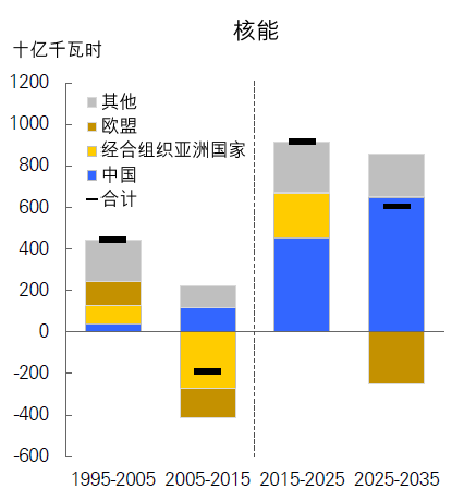 英國石油公司(BP)預測,未來20年,平均每三個月中國就有一個新的反應堆啟動,中國核電將以年均11%速度增長,屆時占據全球新增核電發電量近四分之三的江山。日本和歐盟隨著核電老化和退役,新核電裝機容量將會下降。