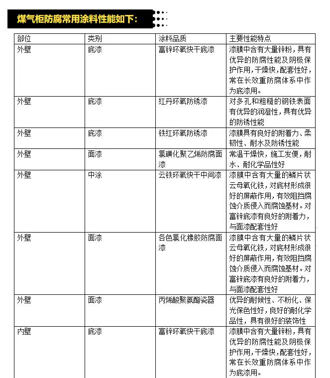 由于氣柜的腐蝕主要是電化學(xué)腐蝕,根據(jù)氣柜龐大,與腐蝕介質(zhì)接觸的兩個特點,選用涂料覆蓋層是最經(jīng)濟的辦法。