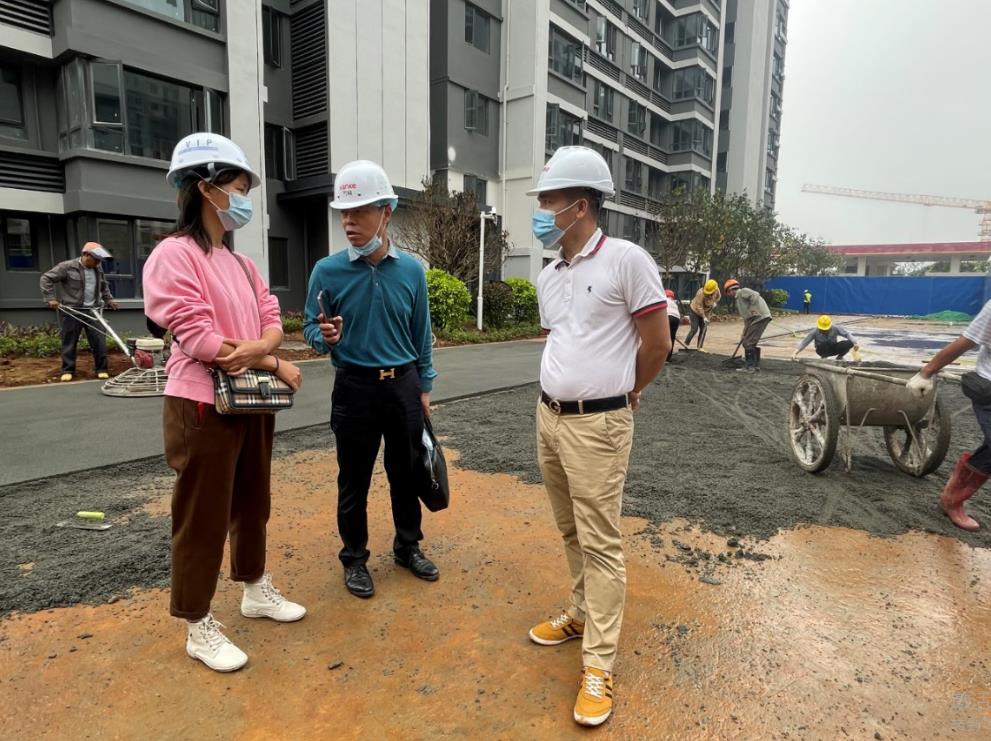 2022年3月31日,公司寧董事長前往了海南金域仕家項目地,認真察看正在進行的透水混凝土施工作業,并與項目人員進行了交流,詳細詢問了項目疫情防控和安全生產落實情況。