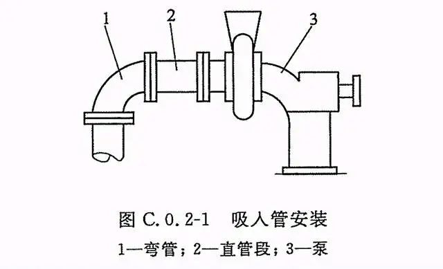 1)泵入口前的直管段長度不應(yīng)小于入口直徑的 3 倍(圖C.0.2-1);