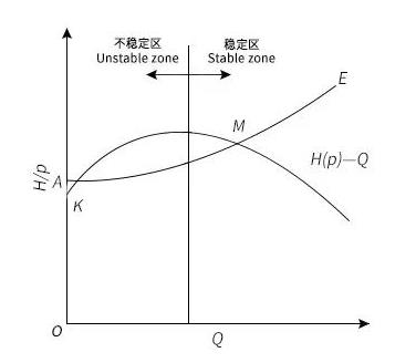喘振的主要誘因在于水系統內部,而非機械結構造成。形成喘振的原因有兩種,一種是水泵性能曲線不合理,存在駝峰,使得一個系統阻力曲線(恒定揚程)與性能曲線產生雙解,造成水泵實際工況來回擺動。另一種是水泵吸入口存在高位窩氣,無法通過水泵對外排出,高位窩氣會周期性導致汽蝕,使水泵出現喘振現象。