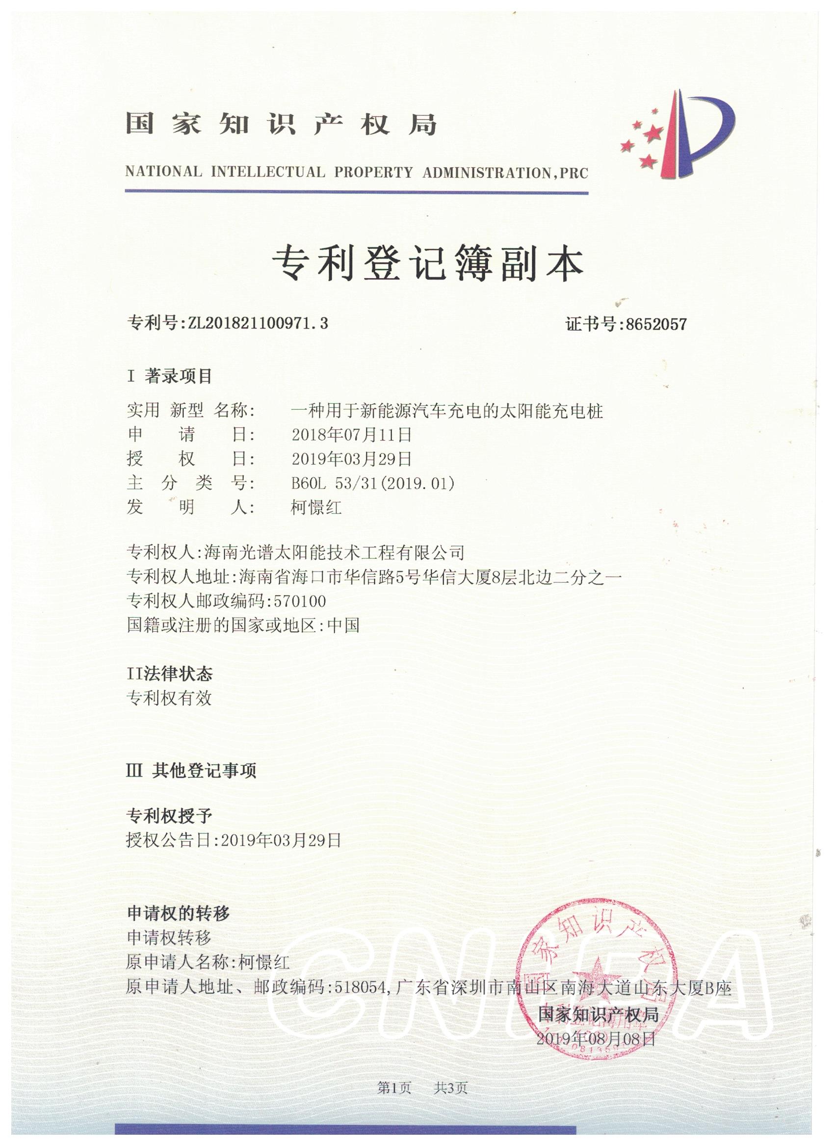 實用新型專利一種用于新型能源汽車充電的太陽能充電樁