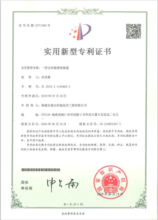 下一篇:實用新型專利 一種太陽能中高溫蒸汽發(fā)生裝置